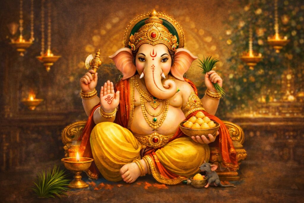 2. рдЧрдгреЗрд╢ рдЬреА рдХреЛ рджреВрд░реНрд╡рд╛, рд╕рд┐рдВрджреВрд░, рдореЛрджрдХ рдЕрд░реНрдкрд┐рдд рдХрд░реЗрдВ