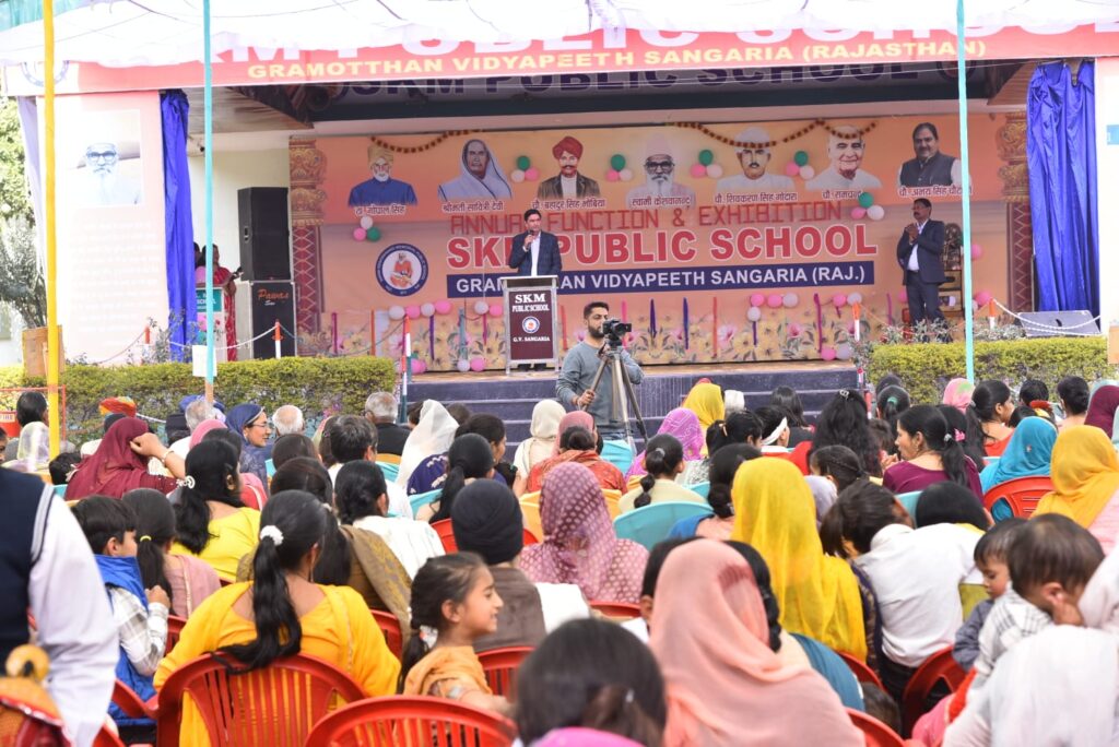 एस.के.एम. पब्लिक स्कूल, ग्रामोत्थान विद्यापीठ, संगरिया में सत्र 2025-26 का वार्षिक समारोह एवं शैक्षणिक प्रदर्शनी भव्यता, अनुशासन और उत्साह के साथ आयोजित की गई। कार्यक्रम में विद्यार्थियों, अभिभावकों, शिक्षकों एवं गणमान्य अतिथियों की उपस्थिति से विद्यालय परिसर उत्सव स्थल में परिवर्तित हो गया।