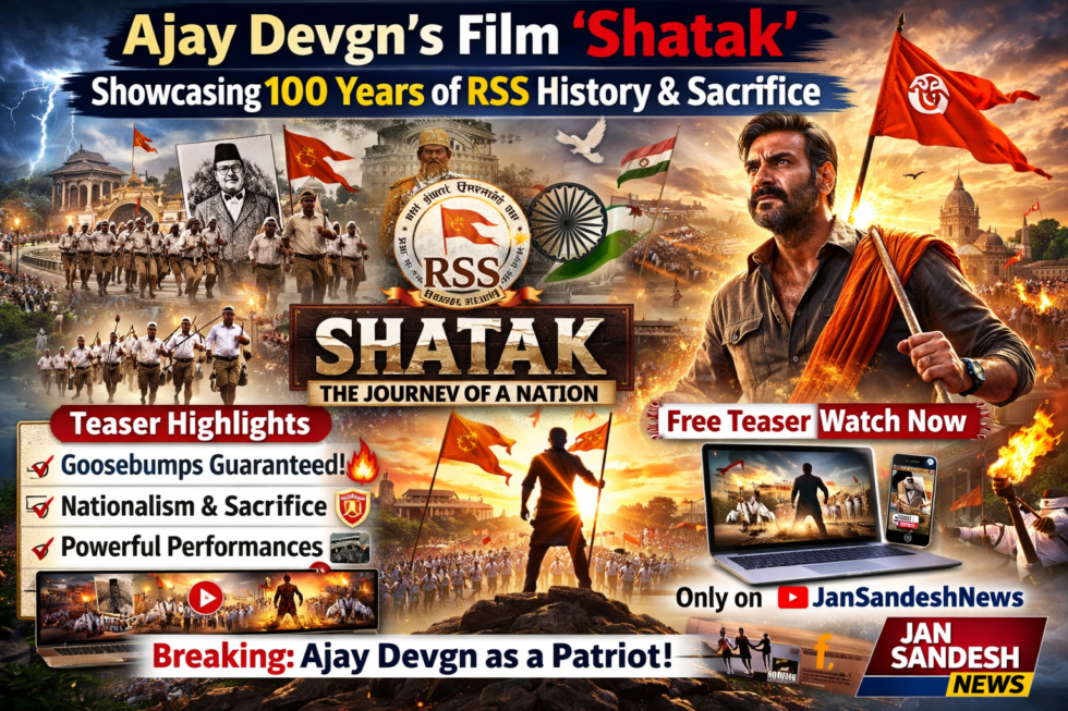 बॉलीवुड अभिनेता Ajay Devgn की अपकमिंग फिल्म ‘शतक’ का टीज़र रिलीज होते ही चर्चा में आ गया है। यह फिल्म Rashtriya Swayamsevak Sangh (RSS) के 100 साल के इतिहास, संघर्ष और बलिदान को बड़े पर्दे पर दिखाने पर आधारित है।