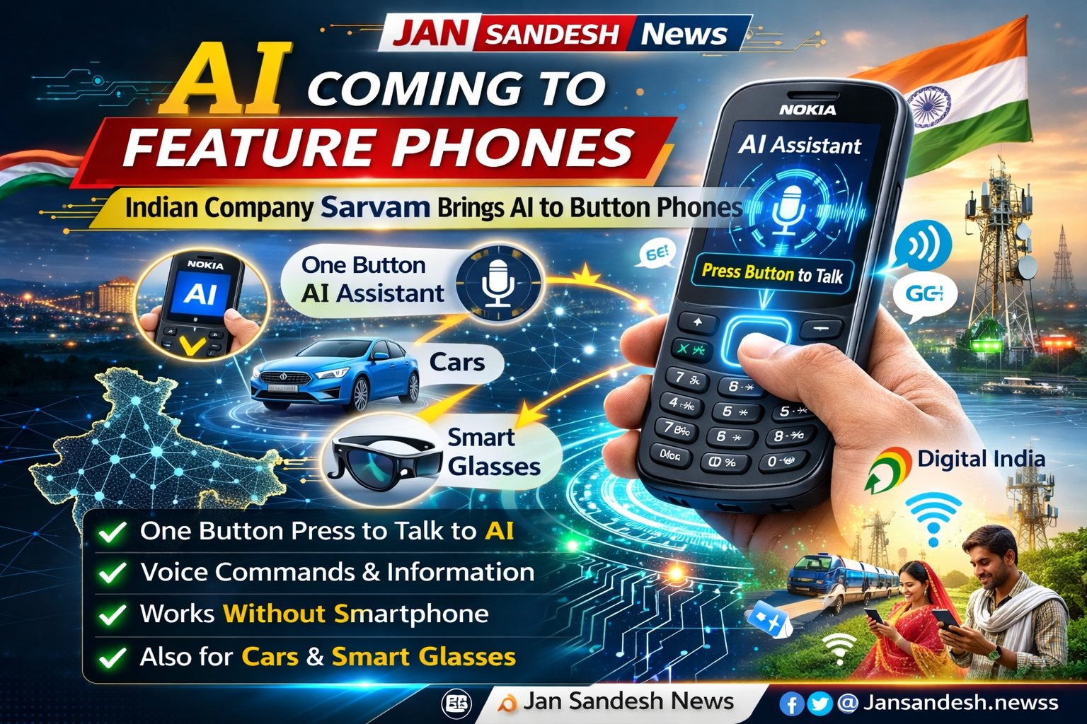 इस नई तकनीक के तहत यूजर फीचर फोन पर मौजूद एक बटन दबाकर AI असिस्टेंट से बात कर सकेंगे। इससे कॉल, जानकारी हासिल करने, सवाल-जवाब और अन्य डिजिटल मदद लेना आसान हो जाएगा। खास बात यह है कि यह सुविधा उन लोगों के लिए फायदेमंद होगी, जो अभी भी स्मार्टफोन की बजाय फीचर फोन का इस्तेमाल करते हैं।