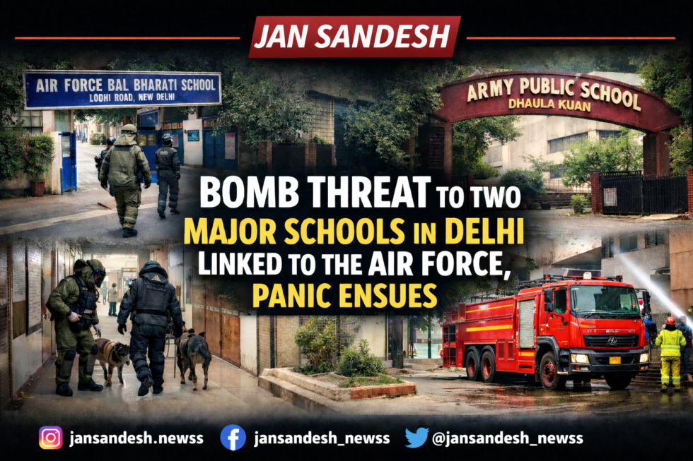 नई दिल्ली। Jan Sandesh News राजधानी दिल्ली में सुरक्षा एजेंसियों को उस समय अलर्ट पर आना पड़ा, जब एयरफोर्स से जुड़े दो बड़े स्कूलों को बम से उड़ाने की धमकी मिली। Army Public School और Air Force Bal Bharati School को ई-मेल के ज़रिए यह धमकी भेजी गई।