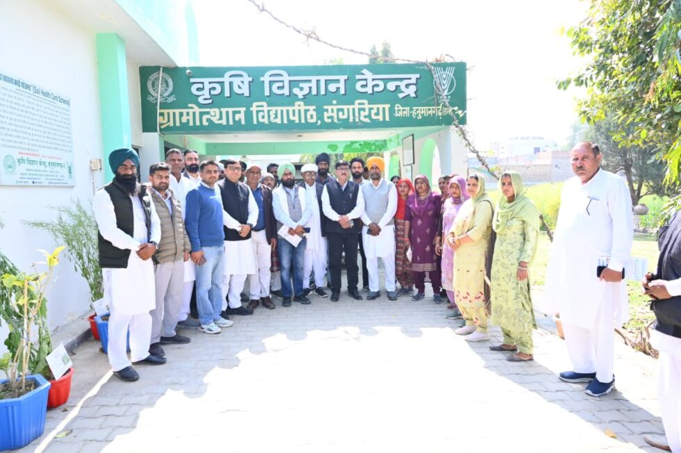 संगरिया के विज्ञान केंद्र, ग्रामोत्थान विद्यापीठ परिसर में आज भारतीय कृषि अनुसंधान परिषद (ICAR), नई दिल्ली के उप महानिदेशक (कृषि प्रसार) का गरिमामय भ्रमण कार्यक्रम आयोजित किया गया। उनके आगमन पर कृषि विज्ञान केंद्र के वरिष्ठ वैज्ञानिक एवं प्रमुख डॉ. अनूप कुमार सहित वैज्ञानिकों व स्टाफ ने पुष्पगुच्छ भेंट कर उनका स्वागत किया।