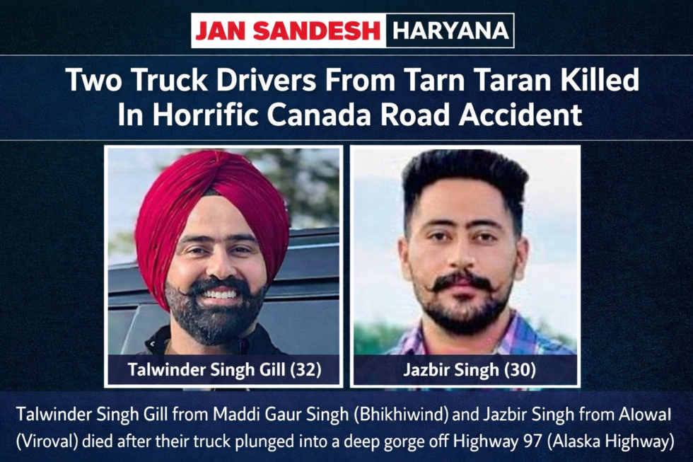 ब्रिटिश कोलंबिया (कनाडा)। कनाडा के ब्रिटिश कोलंबिया प्रांत में एक भीषण सड़क हादसे में पंजाब के तरनतारन जिले के दो युवकों की दर्दनाक मौत हो गई। हादसा हाईवे नंबर-97 (अलास्का हाईवे) पर नेल्सन शहर के पास उस समय हुआ जब ड्यूटी के दौरान उनका ट्रक अचानक अनियंत्रित होकर गहरी खाई में जा गिरा।