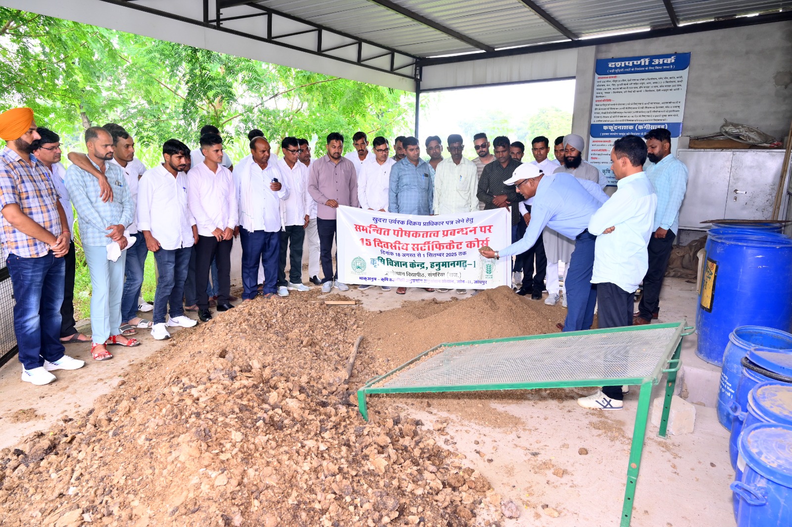 कृषि विज्ञान केंद्र ग्रा. वि. संगरिया के तत्वाधान में सहकारी समितियां के व्यवस्थापकों व सह व्यवस्थापकों के लिए “समवित पोषक तत्व प्रबंधन” विषय पर 15 दिवसीय सर्टिफिकेट कोर्स का आयोजन 18 अगस्त से 1 सितंबर 2025 तक किया गया जिसमें भादरा, नोहर, संगरिया, टिब्बी व पीलीबंगा की सहकारी समितियों के 32 व्यवस्थापकों व सहायक व्यवस्थापकों ने भाग लिया ।