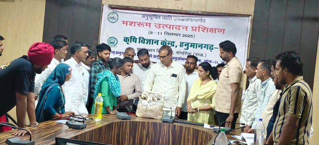 Sangaria- JSNN- कृषि विज्ञान केन्द्र, ग्रामोत्थान विद्यापीठ, संगरिया के तत्वाधान में अनुसूचित जाति उपयोजनान्तर्गत चार दिवसीय संस्थागत प्रशिक्षण ‘‘मशरुम उत्पादन’’ विषय पर दिनांक 08.09.2025 से 11.09.2025 तक आयोजित किया गया।